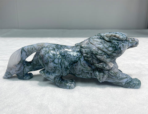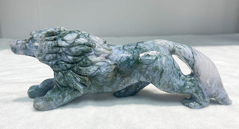 Blue moss agate hand carving wolf, ture to life, so vivid